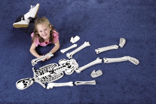 Attach the head bone to the neck bone and much more! Encourage students to explore the human body by piecing together this soft-foam, life-size puzzle. Features 15 illustrated puzzle pieces with formal and common bone names printed on the reverse sides,