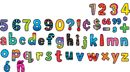 Create personalised headlines, posters and labels with these vibrant, self-adhesive, lowercase letters, punctuation marks and numerals featuring dazzling designs!