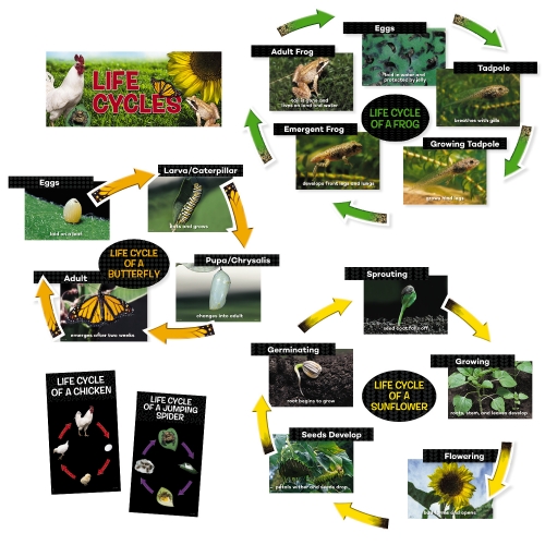 An easy-to-use photographic reference to help children identify the correct sequence for the stages in the life cycles of a frog, a butterfly and a sunflower. The interactive, easy-to-manipulate design provides numerous ways to present information.