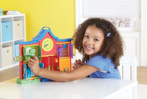 Unlock creativity and curiosity while building early skills! Open a latch, secure a door, turn the schoolhouse clock, and more. This interactive set also includes 5 figurines (1 teacher and 4 children) to add to the imaginative play fun. Perfect for building colour, number, and shape recognition while strengthening fine motor skills.