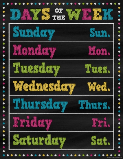 CHALKBOARD BRGHT WEEKDAYS CHAR