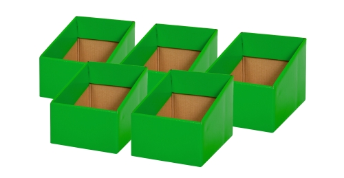 Pack of five Story Boxes (one colour) each 155mm H (back) x 100mm H (front) x 165mm W x 220mm D. Contents not included.