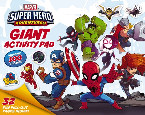 Colour and complete activities featuring your favourite Marvel Super Hero Adventures characters. This giant activity pad includes a cut-out carry handle so fans can take the activity pad with them on their own adventures!